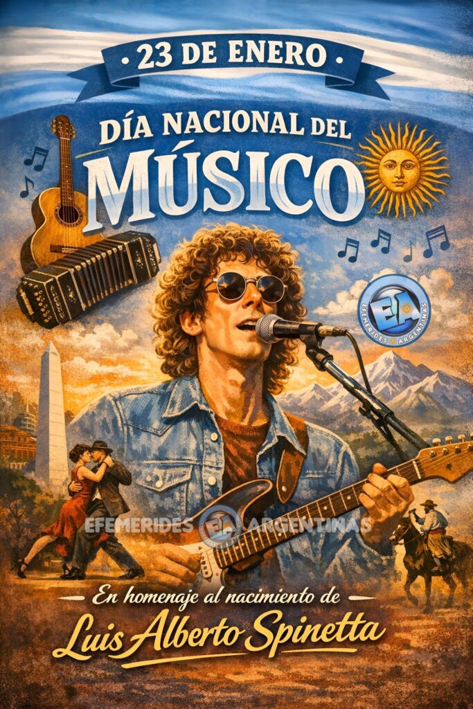 23 DE ENERO – DÍA NACIONAL DEL MÚSICO Hoy celebramos a quienes ponen en palabras lo que sentimos y en melodías nuestra historia. El Día Nacional del Músico fue establecido en homenaje al nacimiento de Luis Alberto Spinetta, una de las figuras más profundas, sensibles e influyentes de la música argentina. El Flaco nos enseñó […]