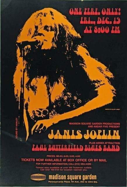 19 y 20 de diciembre de 1969, la banda Big Brother and the Holding Company da su último concierto fue en el Madison Square Garden en Nueva York. Estados Unidos.