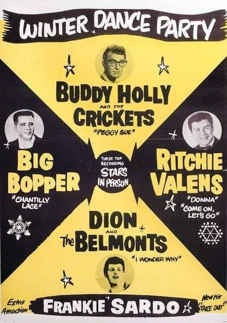 03 de febrero de 1959, en un accidente aéreo en Mason City, Iowa (Estados Unidos), en medio de un temporal de nieve, fallecen Buddy Holly, Richie Valens y Big Bopper, Ese día, las jóvenes estrellas del género -que participaban en una gira conjunta llamada ‘Winter dance party’-, murieron trágicamente cuando la avioneta que los trasladaba a la siguiente ciudad se estrelló.===>#ELSIESTERO, Historias y anécdotas de las mejores Bandas del Mundo, Domingos de 17.00 hs. a 18.30 hs. 105.1FM www.fmsos.com.ar