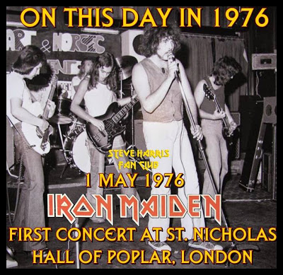 01 de mayo de 1976. Iron Maiden ofrece su primer concierto, con una formación compuesta por los guitarristas Dave Sullivan y Terry Rance, Ron “Rebel” Matthews a la batería, Pau Day a la voz y Steve Harris al bajo. Fue en el salón de actos de la Iglesia Saint Nicholas de Poplar, Londres.
