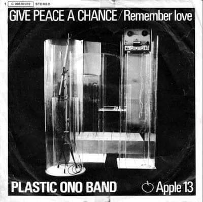 04 de julio de 1969, se publica en Reino Unido, el single de John Lennon llamado »Give Peace a Chance». Es una canción escrita únicamente por John Lennon y originalmente acreditada a Lennon/McCartney (John Lennon y Paul McCartney). Fue grabada por John Lennon y editada en un sencillo bajo el nombre de, Plastic Ono Band.