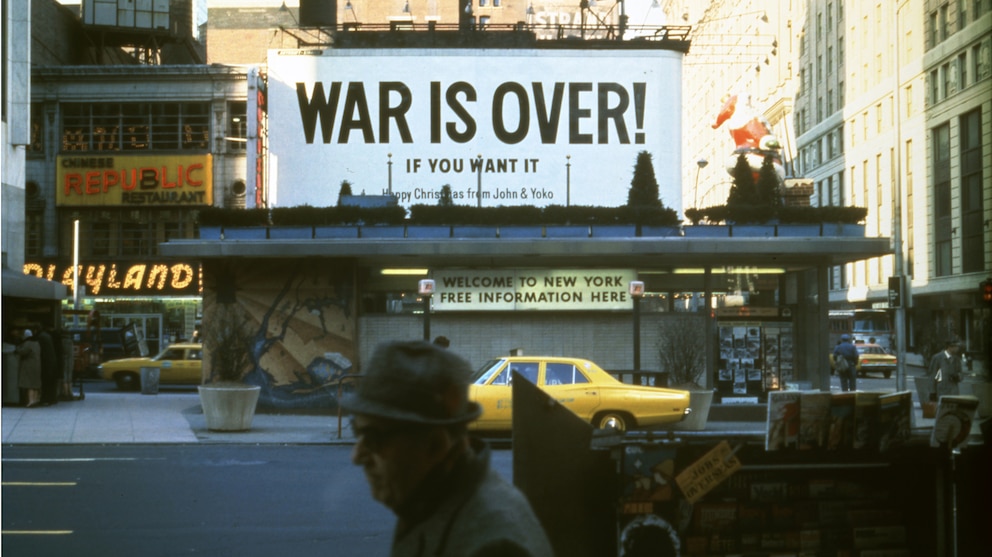 John y Yoko pagaron espacios publicitarios que habitualmente usaban algunas de las marcas más millonarias del mundo. Decidieron que los días previos a la Navidad de 1969, ese año que los tenía como protagonistas, serían ideales para visibilizar un mensaje masivo y, sobre todo, pacifista. La época del año, habitualmente asociada a la concordia y los buenos deseos para el año entrante, era para ellos la indicada.