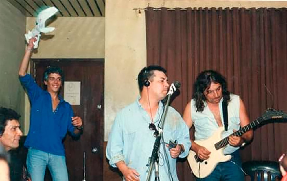 Hasta que paraba, pedía silencio y se sentaba en un escalón a escribir. O salía colgándose la guitarra para el escenario. Ahí decía lo suyo… “A la música no hay que tocarle el culo…”. O la reflexión que tantas veces le escuchamos con Jorgito del 46, cada vez que lo reconocían como Capo, Genio, Grande Pappo y semejantes. Era natural que sonriera con esa carraspera que nunca abandonaba mientras decía… “Tarde”.