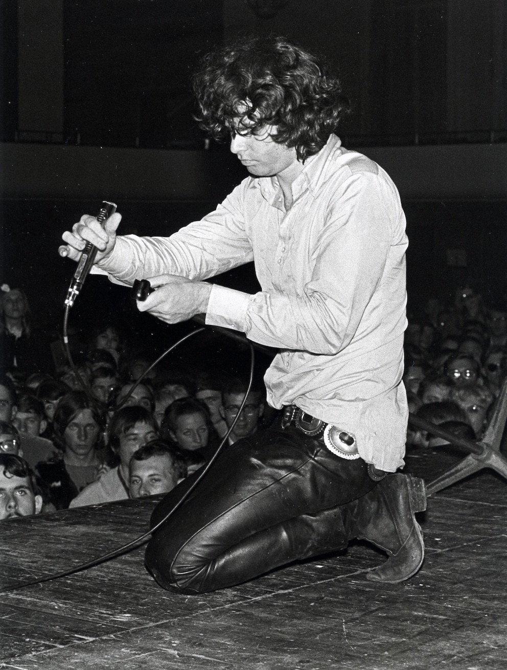 Con la multitud lanzada a invadir el escenario con un frenesí que amenazaba con hacerlo colapsar, Morrison sostuvo su remera empapada en champagne delante de su ingle como si fuera una capa de torero les gritó a sus fans diciéndoles que les mostraría el pene. Cada vez más personas intentaban subir al escenario y avasalló al personal de seguridad. Eso no detuvo a Morrison, que fue empujado por uno de los guardias, pero terminó encabezando un desfile de fans alrededor de todo el auditorio. Con relación a la amenaza de mostrar sus genitales, el tecladista Manzarek aseguró siempre que Morrison no pasó de eso. “No se vio nada. Jim incitó al público, se burló y lo engatusó haciéndole creer que les había mostrado su miembro. Los hipnotizó, creó una alucinación religiosa”, contó.